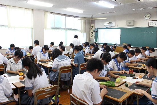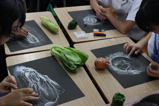 (美術科)「白いパステルで黒い紙に野菜を描いてみよう」
