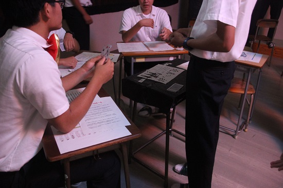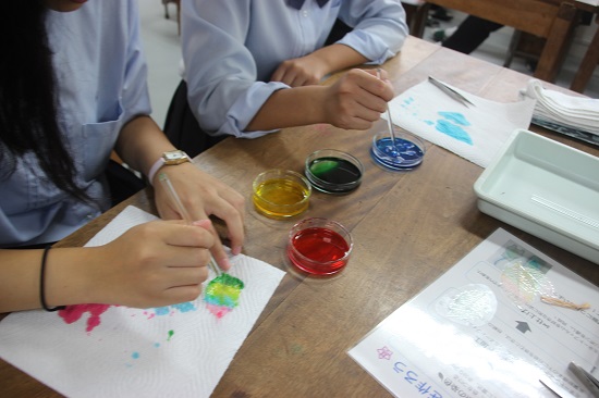 中学生には希望した学科に分かれてもらい、最初に各教室でプロジェクタを用いて、「生徒会長挨拶」、「学校紹介」、「学科紹介」を映像で見てもらいました。その後、普通科では在校生との交流会、理数科では課題研究の紹介及び実験体験、美術科ではデッサン実技の授業が行われました。