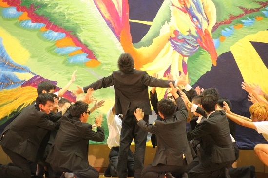 ステージ発表も盛り上がりました。1年美術科の制作した巨大絵画もステージを彩っています。