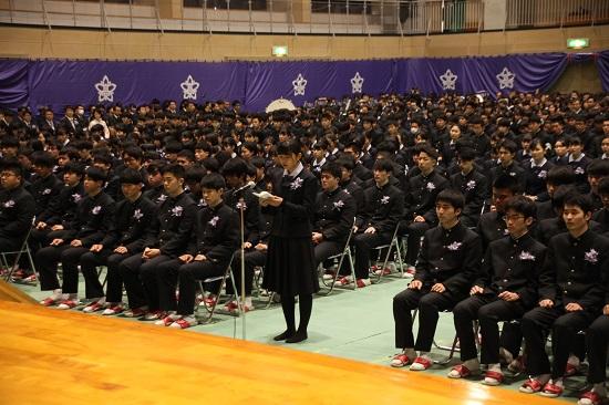 12月15日(金)学年末考査終了後、学年集会を行いました。 学年主任の山崎先生から、夢を追いかける2学年から「夢を喰う」3学年になる為の心構えを話していただきました。