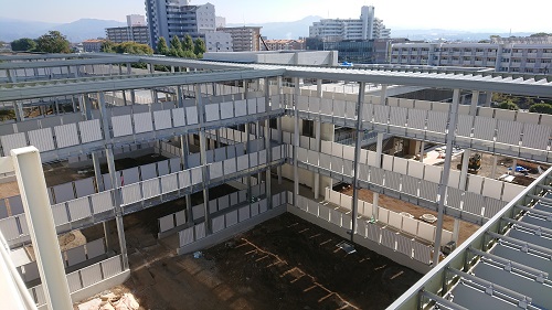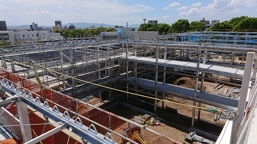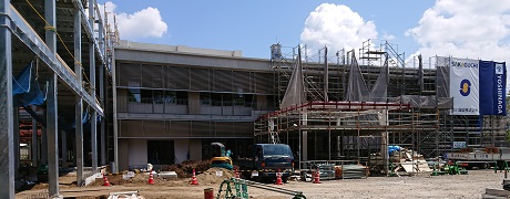 管理棟と図書館の工事の状況(7月)