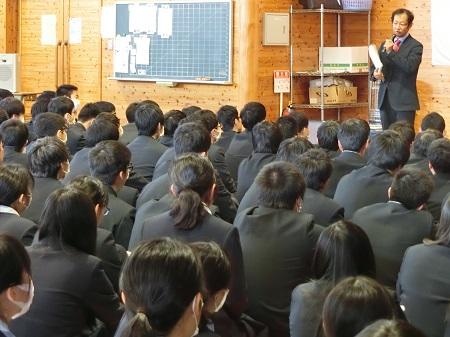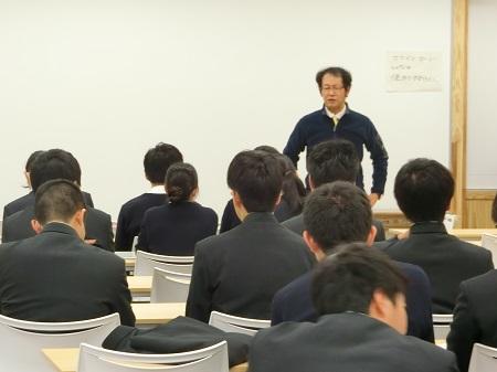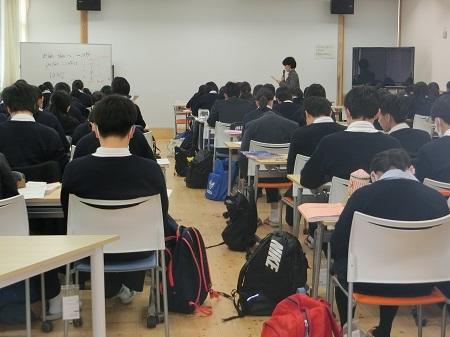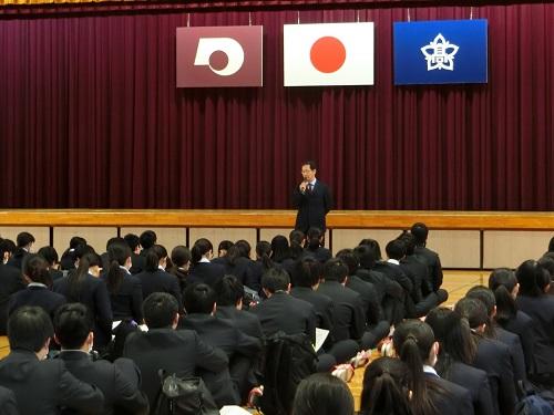 進路指導主事の髙濱先生からは、受験における注意事項、またトラブルが発生した時の対応などの確認が行われました。そして、二次対策後半の55期生の取組の様子には意識の高さが感じられたという感想があり、最後に前期試験での活躍を期待するという激励がありました。