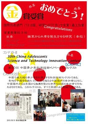 2015(平成27年度)CASTIC 中国青少年科学技術イノベーションコンテスト金賞[国際代表部門]