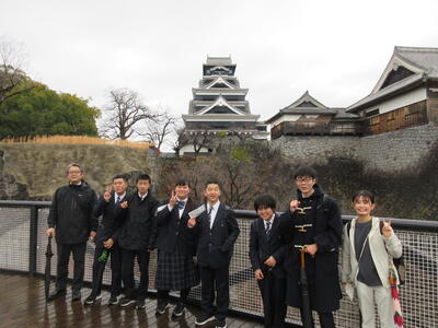 令和5年(2023年)2月10日(金)1年生3グループは校外学習で、熊本城見学とボウリングへ行きました。昼食は、3班に分かれて下通りで食べました。