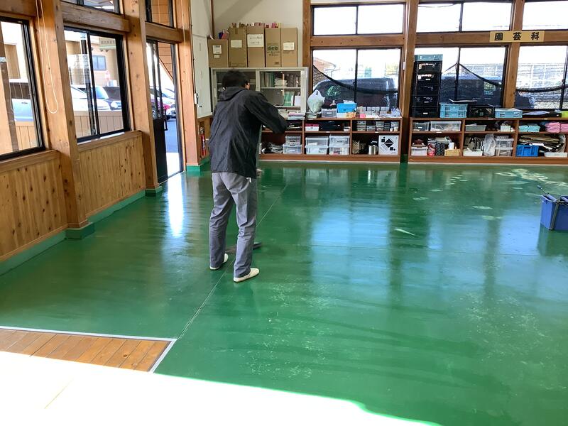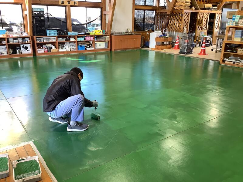 今年は、日頃から使っている園芸科教室の床のペンキ塗りを生徒が頑張りました。使えば、いつの間にか ↓