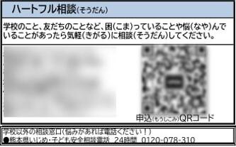 生徒の心のケアや、ストレスへの対処法等、助言や指導を行う専門家が本年度は月1回程度来校されます。保護者の方も相談可能ですので、希望される際は相談支援部までお問い合わせください。