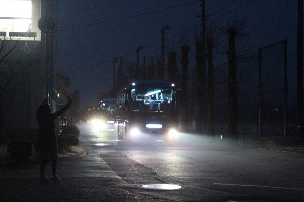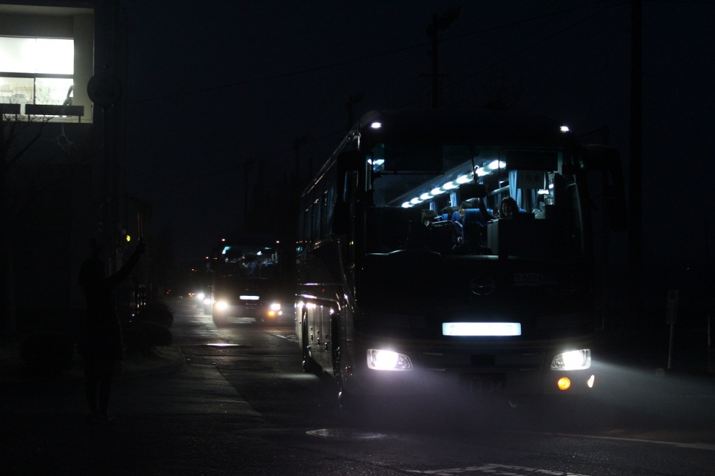 午前6:50予定より10分早く修学旅行団は人吉高校を出発。