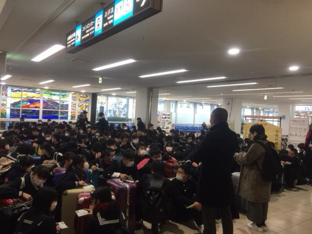 一路、鹿児島空港へ。羽田空港から福島県へ向かい、震災学習後ホテルへ向かいます。
