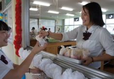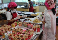 ひまわり亭の本田節先生らを講師にお招きして、弁当メニューを考案しました。味はもちろん、健康や見た目を考えて、地産地消弁当を作りました。
