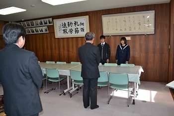 本日昼休みに、2月2日~3日に佐賀県で開催される九州大会への出場(第69回熊本県高等学校生徒理科研究発表会で「最優秀賞(2位)」を獲得による)に対して、同窓会理事長より部活動奨励金が代表生徒に交付されました。発表題は「Chase a Rainbow~不可能な夢を追う~」です。 同窓会の方々への感謝、また支えてくださる全ての方々への感謝を忘れずに、佐賀県でもしっかり頑張ってきます、と抱負を述べていました。