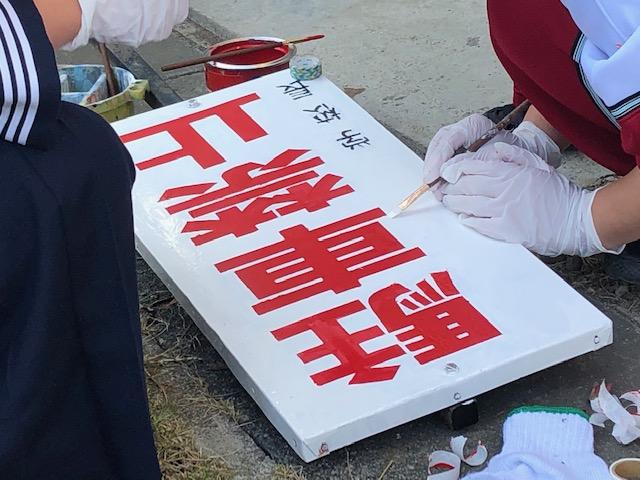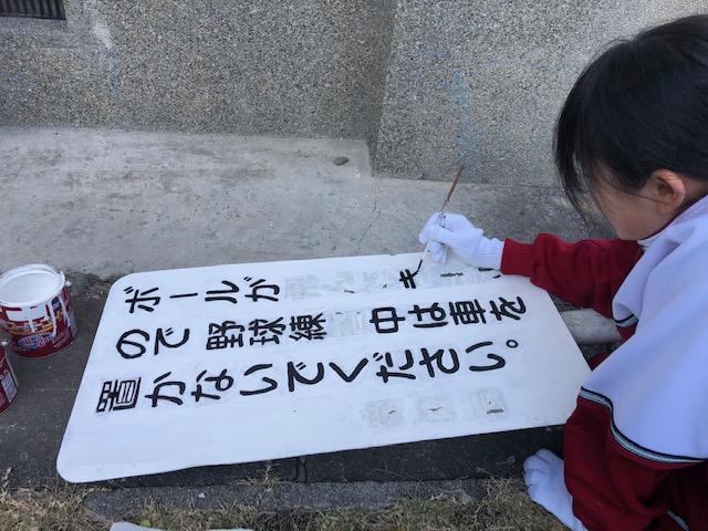看板塗り直し中【美術部】