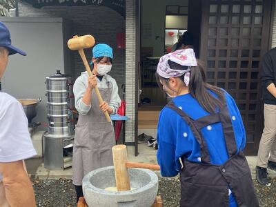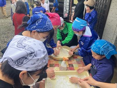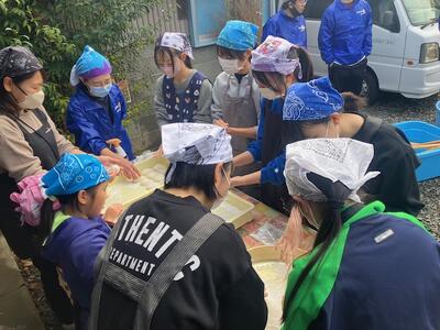 人吉中央ロータリークラブのみなさんと、子ども食堂のスタッフみなさん、地域の子どもたちと一緒に餅つきを行いました。初めて餅つきを体験する生徒も多く、杵の扱い方やつきたてのお餅を丸めるコツなどを教わりながら、楽しく活動できました。