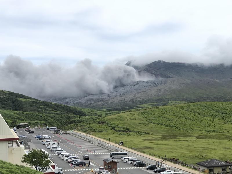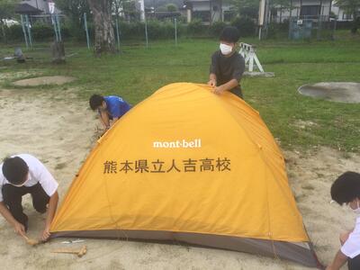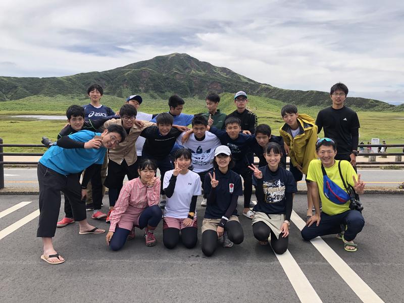 11日(日)に杵島岳で行われる「山の日」記念イベント参加も兼ねて、夏合宿を阿蘇山系で行いました。当初、10日(土)は烏帽子岳に登り坊中のキャンプ場に幕営する予定でしたが、火山灰が北へ向かって激しく流れ降り、真っ白の状態で、とても幕営はできそうになく、急遽南阿蘇にキャンプ地を探しました。結果、くぎのキャンプ場隣の熊本清陵高校グラウンドが無償で借りれて、幕営しました。今回の合宿は、4チームに分け、読図力、テント設営技術、食事メニュー&味、行動技術、植生などを競いました。優秀なチームには、顧問がポケットマネーで購入した賞品が与えられました。新チームの1年生・2年生の親睦も深まる、楽しい合宿となりました。ちなみに、F先生の賞品は、スプーン・フォークセット、H先生の賞品は、マグカップでした。お菓子をもらったチームもいました。