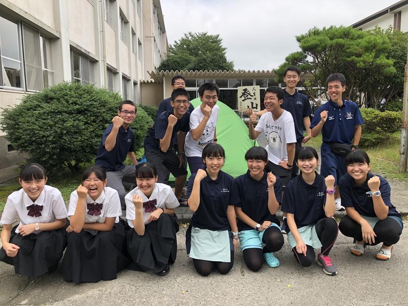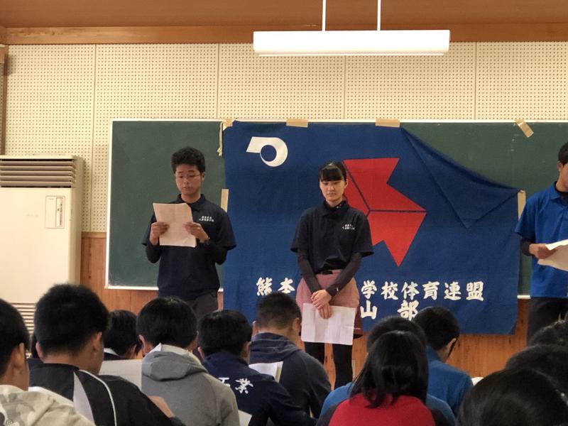 9月14日(土)15日(日)の1泊2日で、美里町の甲佐岳で新人登山大会がありました。2年生男子5名、1年生男子7名、2年生女子3名、1年生女子2名の総勢17名で参加してきました。結果は、女子が優勝、男子は3位となりました。新チームに移り、各校力を付けてきているようでした。合宿の回数も、本校よりも多く実施しているようで、体力、読図力など本校を上回っていました。11月にある秋季大会に向けてがんばっていきます。