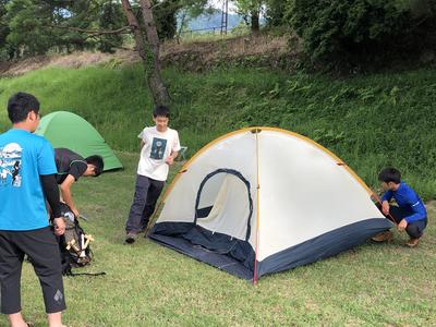また、キャンプ活動を通してテント設営や調理の練習も行います。