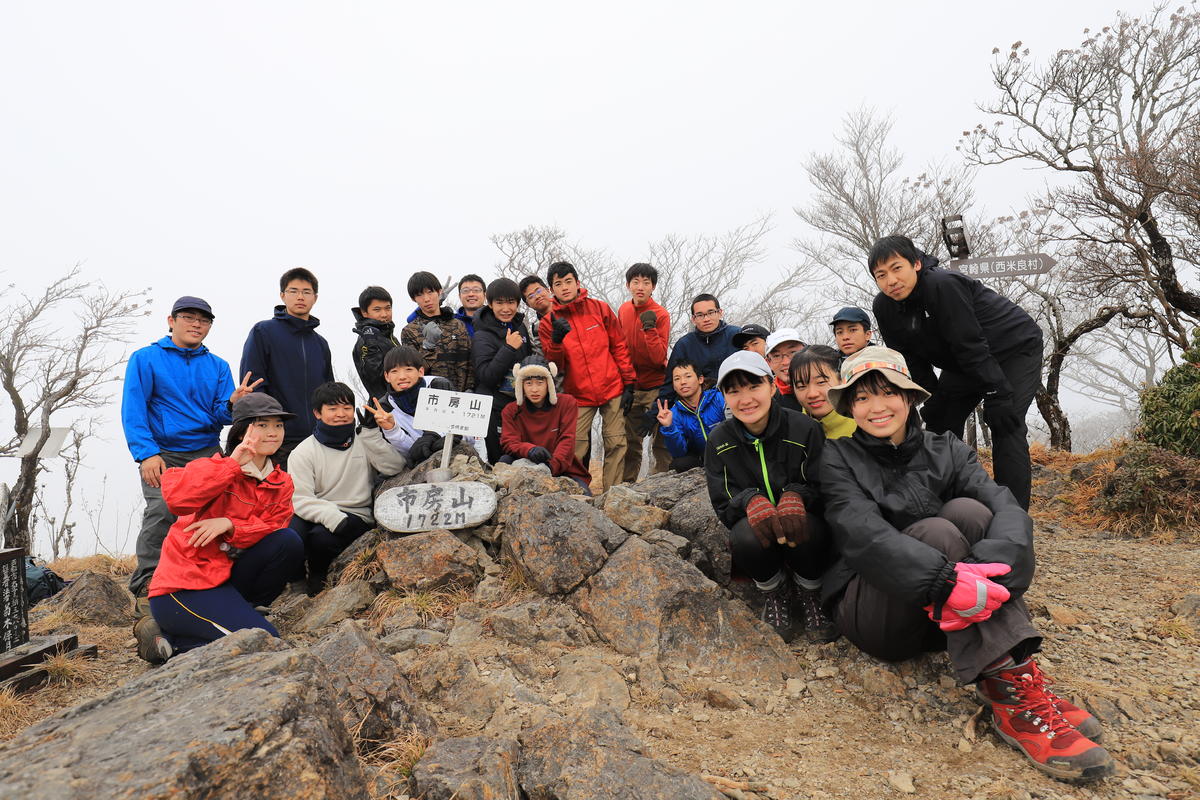 12月13日(金)~14日(土)、本校セミナーハウスで両校の山岳部が宿泊し、翌朝、市房山にアタックしました。前日までの寒波から寒さが緩み、快適な登山となりました。頂上で全員でワンショット。次は、1月のスキー合宿です。
