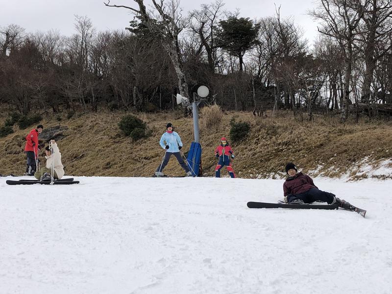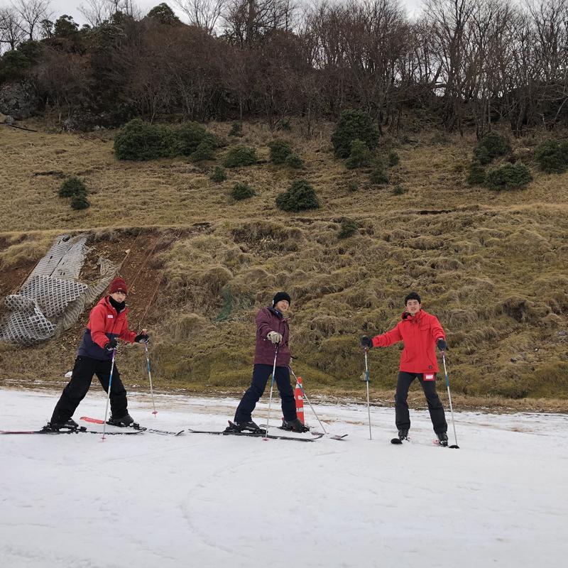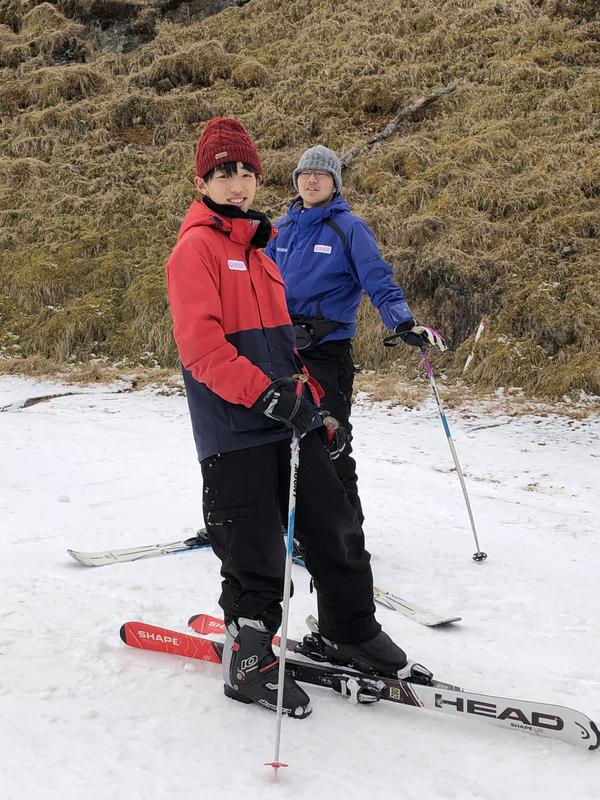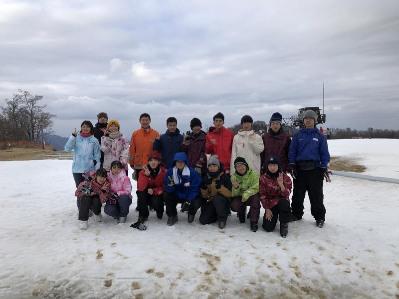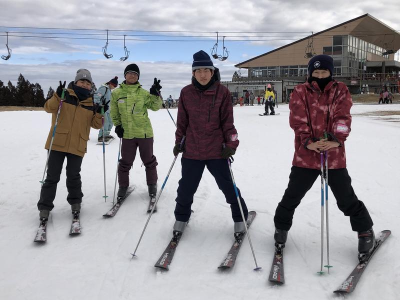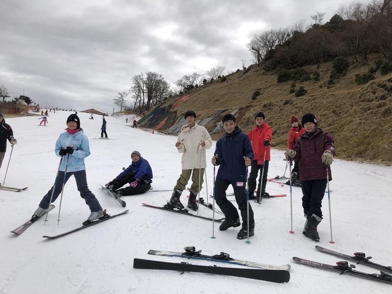1月5日(日)6日(月)の1泊2日、人高山岳部恒例のスキー研修を実施しました。今年は、久しぶりに合宿形式が復活し、充実した研修ができました。昨年度までのくじゅうスキー場から五ヶ瀬スキー場に変えて行いました。10数年前まで活用していた清和高原天文台の宿に泊まり、夜は星の観察も行いました。6日朝は、バスに揺られて雪山へ。あいにく今年はどこも雪不足で、五ヶ瀬では500mコースのみでした。それでも平日のためかスキーヤーも少なくリフトは乗り放題でした。1年生は、午前中は文字通り「悪戦苦闘」、午後はちょっとは滑られるようになってきたかな、楽しくなってきたかなというところで終わりました。2年生は、昨年の経験は体が覚えており、順調に滑っていました。全員が参加でき、全員がけがなく終わった楽しい合宿でした。当日は、熊本北高校もスキー研修に訪れていました。
