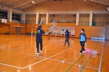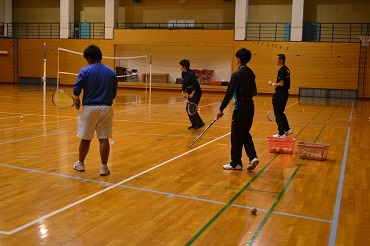 1泊2日でセミナー合宿を行っています。次の公式戦は、4月終わりの文尚堂杯兼国体人吉球磨地区予選です。この大会で男子8ペアが、県大会へ進出します。ここに進出するために頑張っています。