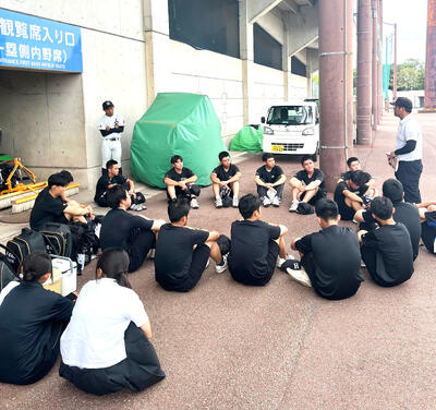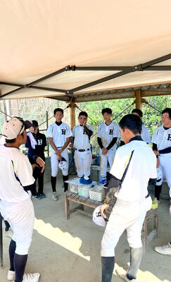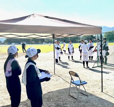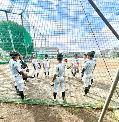 岱志高校野球場にて練習試合を行いました。試合を通して確認した課題点を改善しながら、秋大会に向けての準備を進めていきます。
