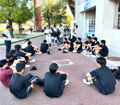 熊本高校において練習試合を行いました。試合を通して良かった点や課題点を城南地区秋大会に生かせるようにします。