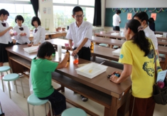 人吉東小学校で行われた「ほこすぎフェスタ」に科学部が小学生に科学のおもしろさを紹介しました。