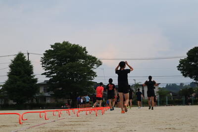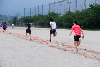 今日はミニハードルを使ったトレーニングをしていました。体調管理に十分気を付けて、高校総体ではベストを尽くせるよう頑張ってください。(写真部H)