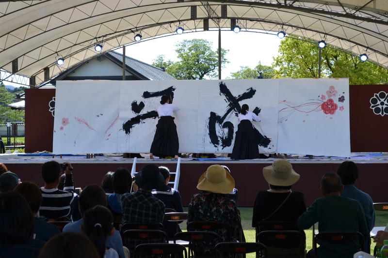 4月27日、人吉城のお城祭りにて書道パフォーマンスを披露してきました。