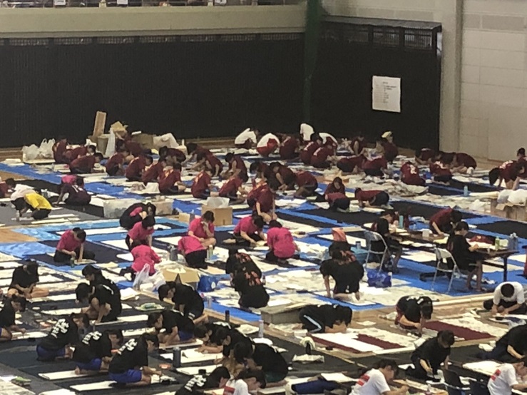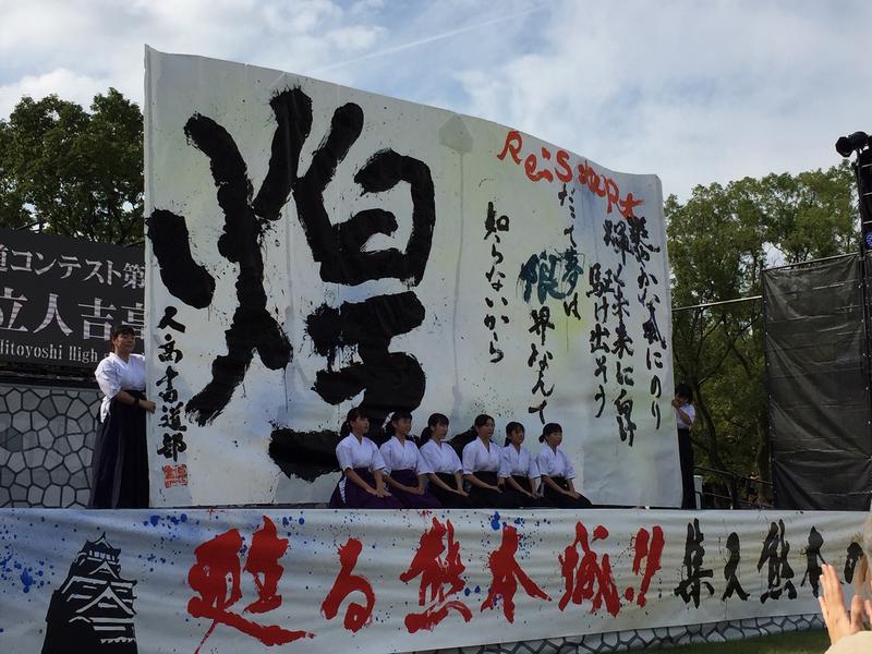 10月6日熊本城二の丸広場にて、書道パフォーマンスを行ってきました。これまでにない多くの観客の前で、またこれまでにない大きな紙面に、力一杯みんなで書いてきました。ついでに、オープンしたばかりのSAKURAMACHIにも寄ってきて、みんなテンション上がりました。すばらしい秋の思い出となりました。