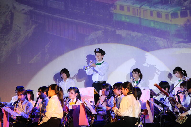 第3部バラエティ・ステージの「くま鉄で行こう!」と題したコーナーでは、ベートーヴェン作曲《交響曲第6番〈田園〉》をはじめとする鉄道にからめた音楽作品3曲を、くま川鉄道部分再開への感謝と全線復旧への願いを込め演奏しました。