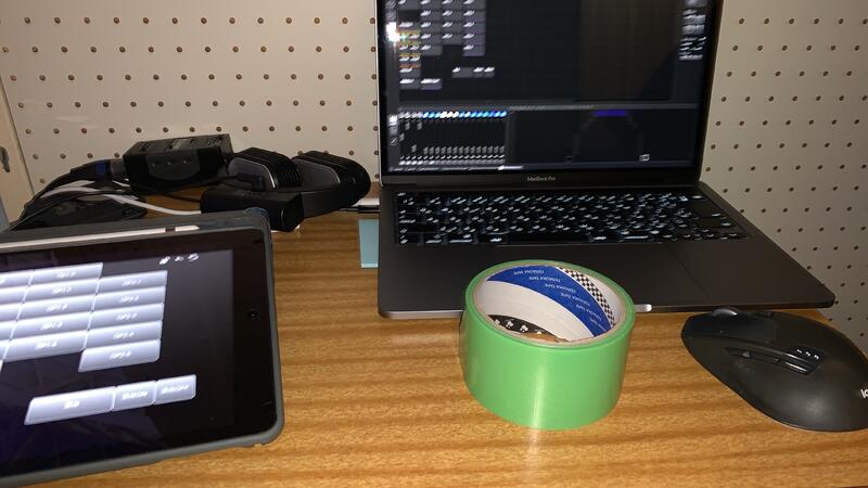 音響屋さんの隣で細々と、操作にはiPadを使います。今回仕込んだのは合計24灯だけでしたが、照明の明るさや色など、ステージに立たれる吹部以外の部活や有志発表など全ての皆さんが輝けるよう、事前に作った明かりを切り替えていきます。定演用に作った平台と箱馬で組んだ張り出し舞台も大活躍です。