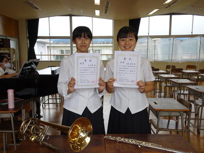 吹奏楽部から2名が出場し、1名が球渓賞・朝日賞(最高賞第1位)、1名が奨励賞(第3位)を受賞しました!