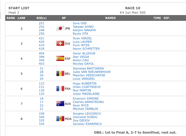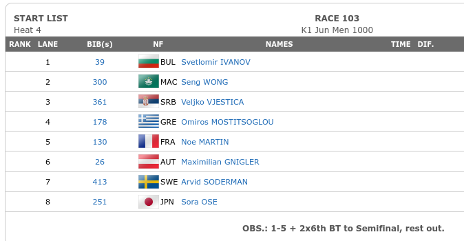 大瀬空は ジュニアの男子カヤックシングル1000m(junior K1M-1000)、フォア500m(junior K4M-500)に出場します。日程、組合せ、準決勝・決勝進出条件を掲載しています。