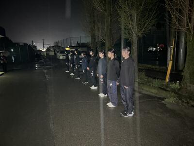 帰着時は真っ暗で雨も降っていましたが、キャプテンが成果報告と感謝の言葉を立派に述べました。