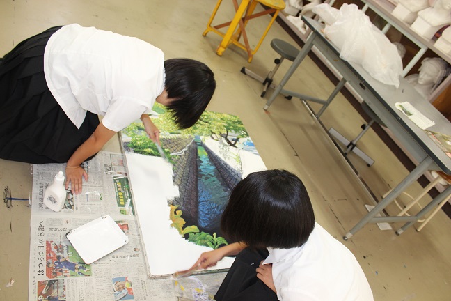 現在の美術部員は1,2年生だけで5人いて週2回活動しています。