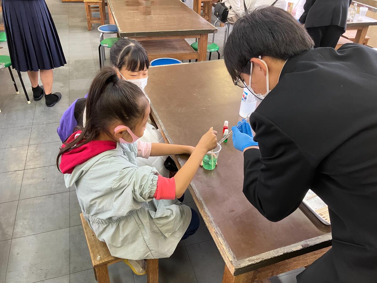 人吉東小学校で行われた「ほこすぎフェスタ」に科学部が小学生に科学のおもしろさを紹介しました。