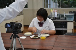 今日は、Nコンのテレビドキュメント部門での作品作りのために、調理室で戦時中の食事を再現してみました。現代の食事と比べて、味は薄く、タンパク質や脂質は少なく、たいへんあっさりしていました。しかし、食べ続けてしっかり味わってみると、素材の味がそのものを感じることができ、おいしいと思いました。この感覚を、作品の中に生かしたいと思います。