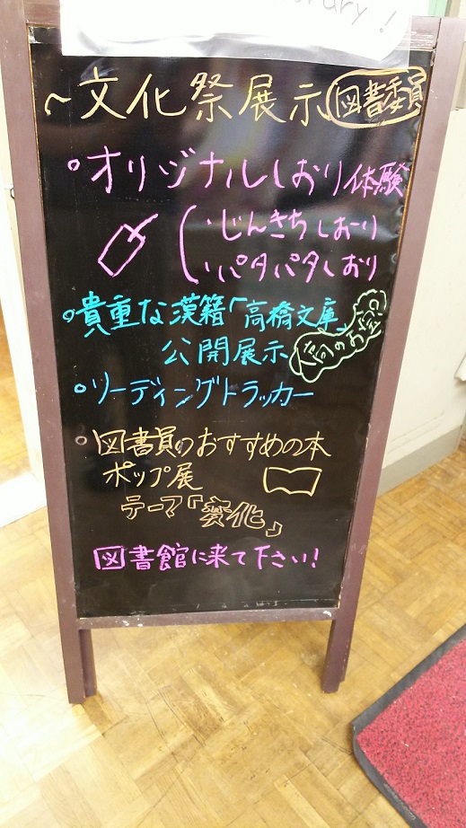 いよいよ今週末は文化祭です。図書館では展示部門として