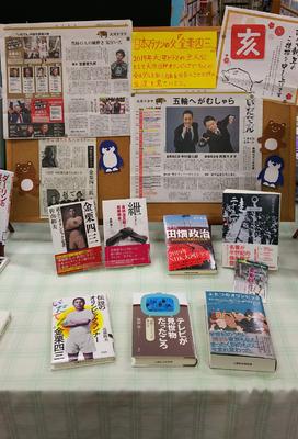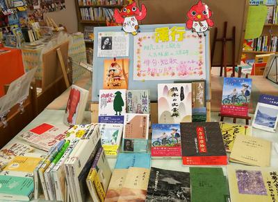 紹介した本や、関連本を展示中!紙面で読んで、気になった本を探しに来てください。