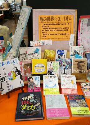 図書館では数字を題材にした小説や、生活の中に溢れている数学に親しみが持てるような本を集めて展示しています。