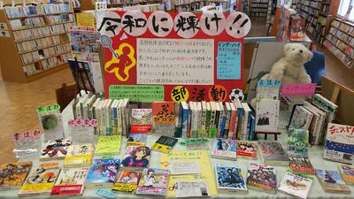 人高にある部活動に関連する本を部活紹介資料と一緒に展示しています。