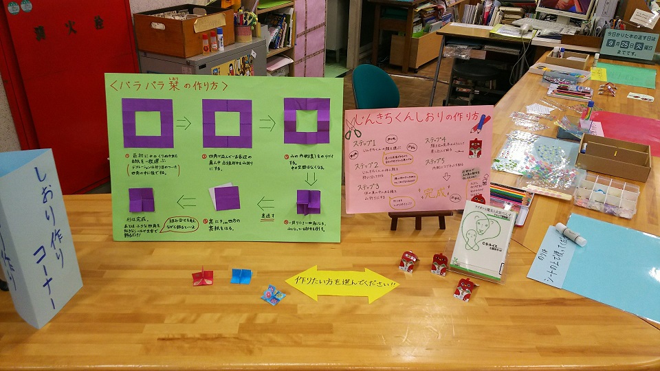 9月22日のオープンスクールでは、図書委員が準備した「三角しおり」を図書館で配布予定です。お楽しみください。