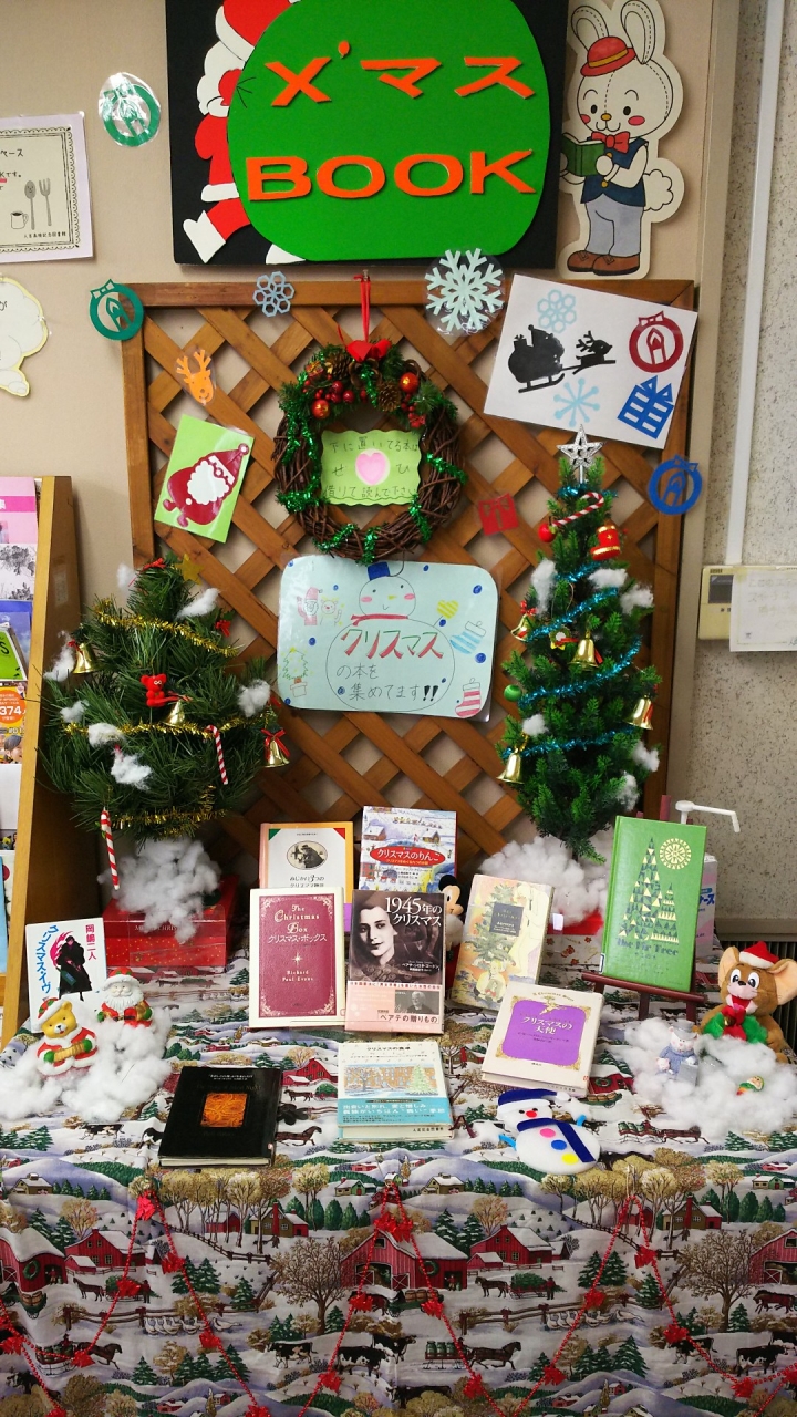 12月も目前。図書館の入り口にはクリスマス展示を始めました。見にきてくださいね!