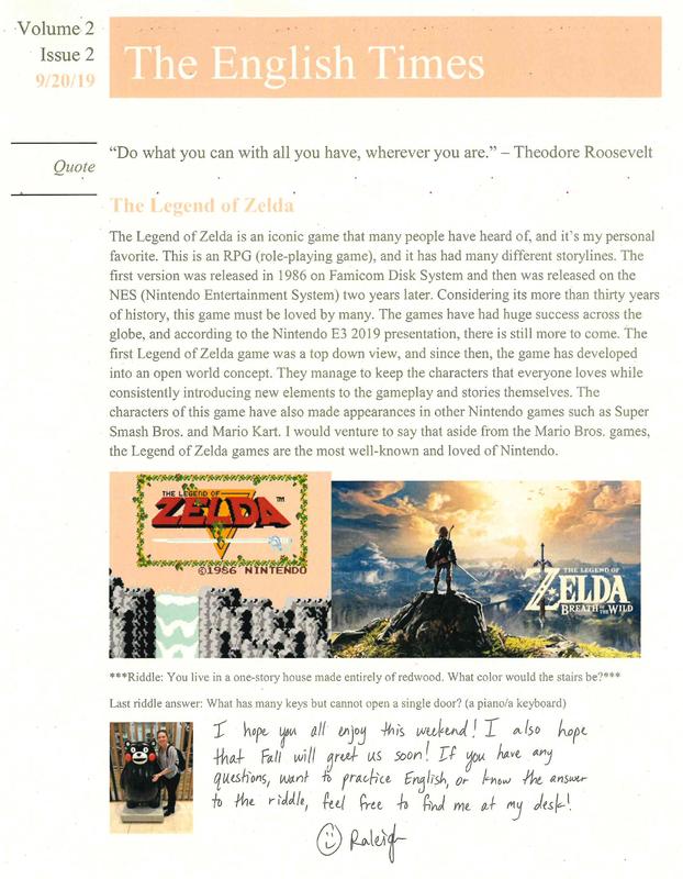 ALTラーリー先生のThe English Times