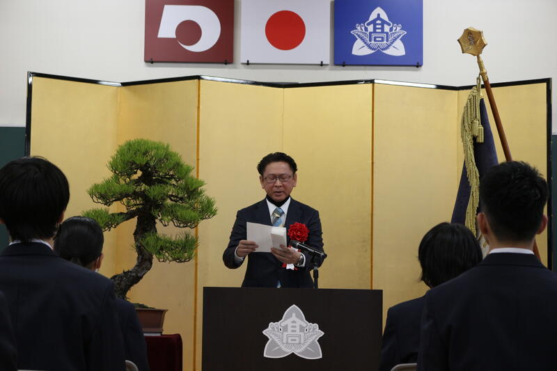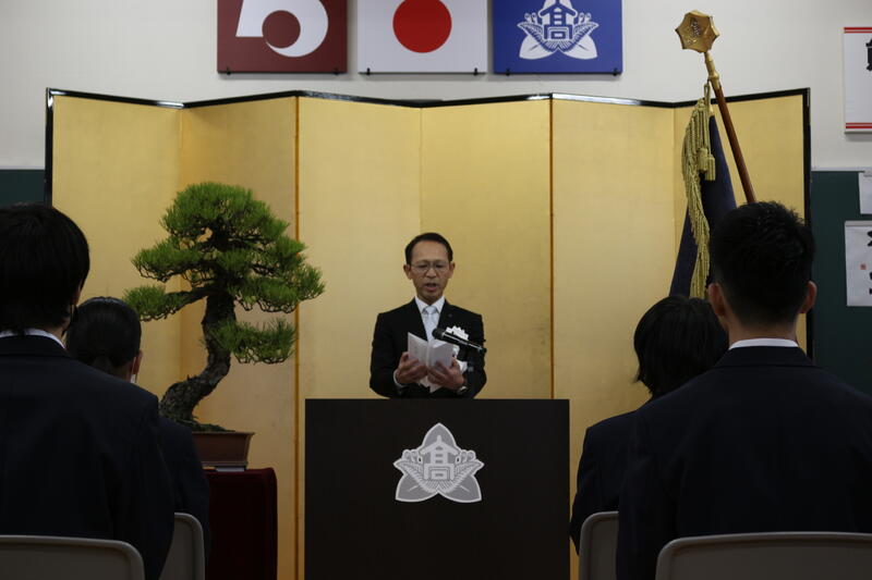 始業式では校長先生から、本校の教育綱領である「礼節」「勤労」「進取」の中の「勤労」についてご自身の経験をふまえて話をしていただきました。