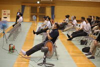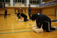人吉下球磨消防組合よりに講師をお招きし、胸骨圧迫の方法、AEDの使い方、エピペンの使い方について教えていただいた後、実践練習を行いました。
