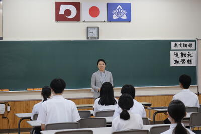 始業式では校長先生から、本校の教育綱領である「礼節」「勤労」「進取」の中の「勤労」についてご自身の経験をふまえて話をしていただきました。