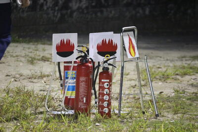 炎に向かって噴射するのではなく、燃えているものに噴射するというコツを教わりました。