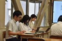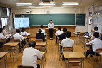 体験授業終了後、本校生徒が実際に授業を受けている様子を見学されました。