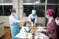 つぼん汁は全員食べたことがありましたが、ねったんぼは初めて知った生徒が大半で、食の名人さんにアドバイスを受けながら美味しく作ることができました。家でも作りたいという声もあり、郷土料理を伝えていくことの大切さを実感していました