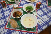 今年のメニューはシチュー、ミートボール、野菜ときのこのサラダ、カップケーキでした